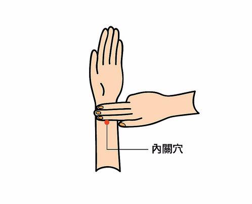 內關穴大致上位於手腕下三隻手指頭寬處,一樣可以舒緩暈車不適,可以一邊配合著呼吸一邊按壓,效果會更加顯著。